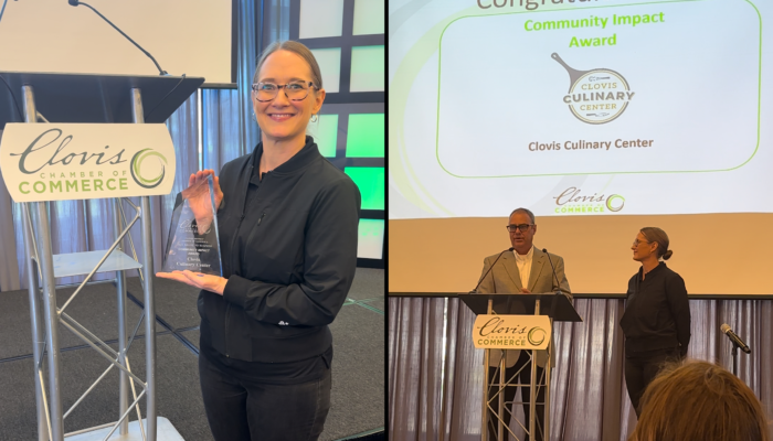 “The Clovis Culinary Center is honored to be recognized by the Clovis Chamber of Commerce,” said Shawn Miller, a founder and ongoing board member for the kitchen. “This particular award is meaningful because it means the Culinary Center has made an impact with its clients and customers in the community — which has been the goal from Day 1.”